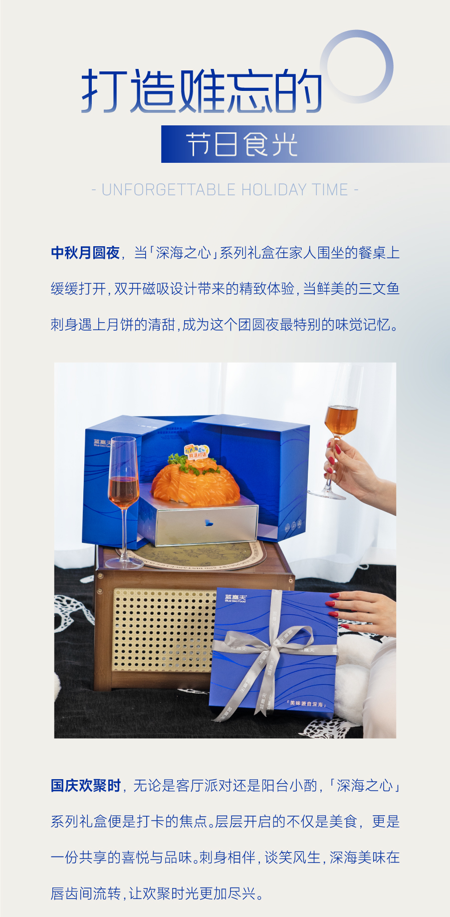 中秋月圆,国泰民安,团圆时刻更需要一点深海惊喜来点燃氛围✨点击购买💙蓝塞夫「深海之心」系列礼盒💙以海洋的至鲜之礼,为您解锁团圆宴的仪式感——————————————🍱「深海之心·高定款五拼礼盒」适合小聚的诚意之选一打开就是扑鼻的鲜甜~严选三文鱼🍣、北极甜虾🦐、北极贝🐚、金砖蓝莓红酒鹅肝……每一片鱼肉都厚切饱满,纹理清晰!入口柔嫩,油脂香在嘴里化开~瞬间提升聚餐格调,轻松拿捏氛围感💫————————